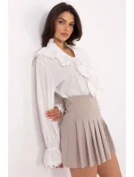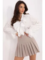 Krátká sukně s asymetrickou přední částí, doplněná páskem na zavazování.