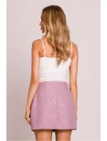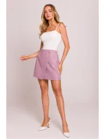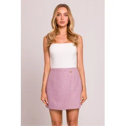 Elegantní minisukně ve tvaru trapezu, vyrobená z vysoce kvalitní látky. Asymetrický střih s ozdobným motivem na přeloženém límečku jí dodává jedinečný charakter, zlatý srdcovitý knoflík jemně zdůrazňuje elegantní akcent. Model má skrytý zip na boku, co zajišťuje pohodlí nošení a ideální padnutí. Sukně je kompletně podšívaná, co zvyšuje pohodlí a zajišťuje perfektní sedění. Navrženo a ušito v Polsku s důrazem na každý detail.