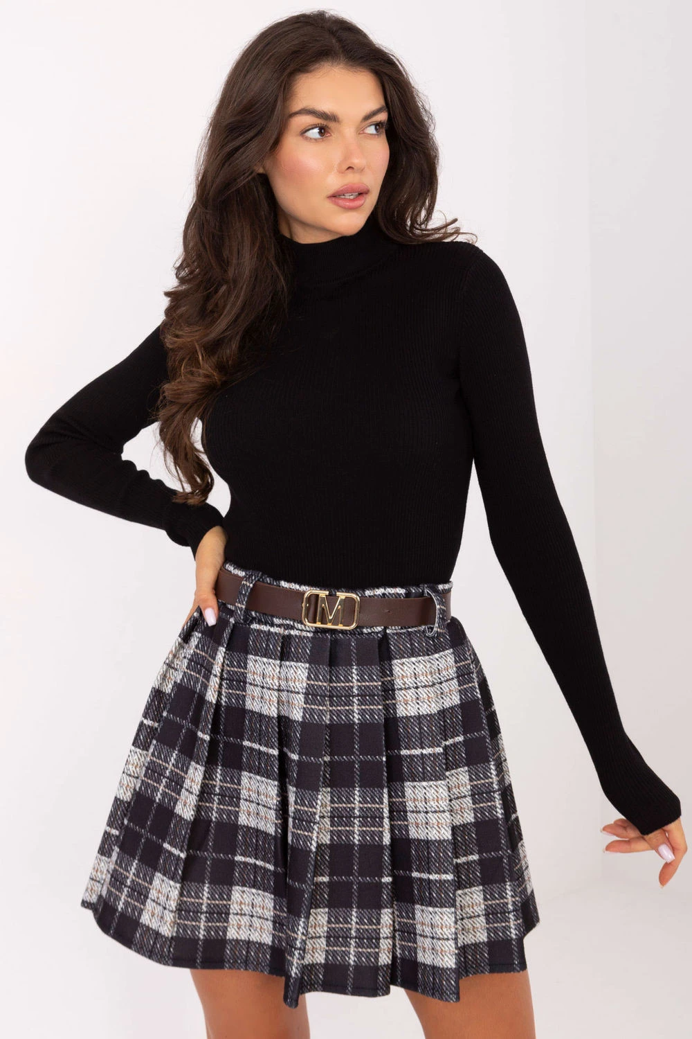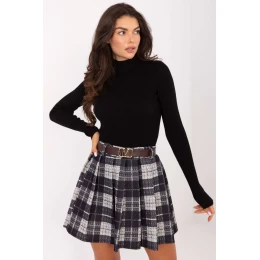 Plisovaná dámská sukně s casual charakterem, skvělá na každý den i do práce. Vyrobená z lehkého polyesteru v klasickém károvém vzoru, představuje módní a nadčasový styl. Model mini délky s elastickým pásem poskytuje pohodlí nošení, zatímco dodatečný zapínací pásek zdůrazňuje pas a dodává celku výraznější vzhled. Univerzální návrh, který se skvěle hodí do každodenních stylizací, spojující pohodlí s módním akcentem.