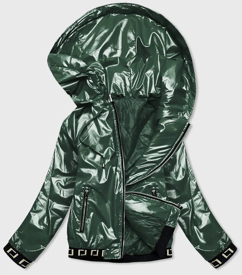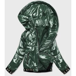 Krátká zelená dámská bunda s kapucí (B9787-10)