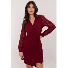 Elegantní koktejlové šaty s olověným střihem, ideální na večírky a slavnostní příležitosti, okouzlující svým rafinovaným stylem. Model s mini délkou a přesýpacím výstřihem jemně podtrhuje postavu, zatímco šněrování v pasu dále modeluje pas a dodává celku ženský charakter. Šaty vyrobené z hladké látky, obsahující polyester a elastan, zaručují pohodlí a přizpůsobení. Pozornost přitahují dlouhé rukávy zdobené flitry, které jí dodávají výjimečný lesk a dělají z ní ideální volbu pro večerní vycházky.