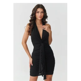 Pokud hledáte šaty, které dokonale zvýrazní vaši postavu a zajistí, že se budete cítit výjimečně, tady jsou. Šaty M912 jsou ženskost v čisté podobě. Hluboký halterový výstřih, zástěra po celé délce a smyslně odkrytá záda vytvářejí spektakulární efekt, vedle kterého nikdo nepůjde lhostejně. Vyrobená z elastického, přizpůsobivého materiálu, krásně padne na tělo a modeluje postavu. V přední části zdobená efektním uvazováním, které jemně zdůrazňuje pas a dodává šatě jedinečný charakter. Klasická černá - nadčasová, elegantní a vždy aktuální. Šaty M912 jsou více než jen malé černé, jsou to volba stylu, odvahy a ženskosti.
