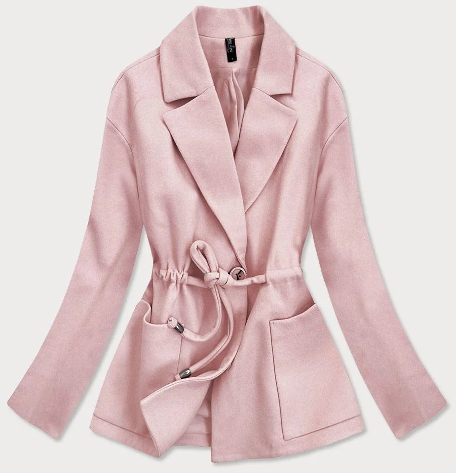 Krátký růžový volný dámský kabát (2727)