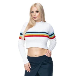 Krátký žebrovaný svetr s rolákem. Svetr s duhovými pruhy z měkké příze.