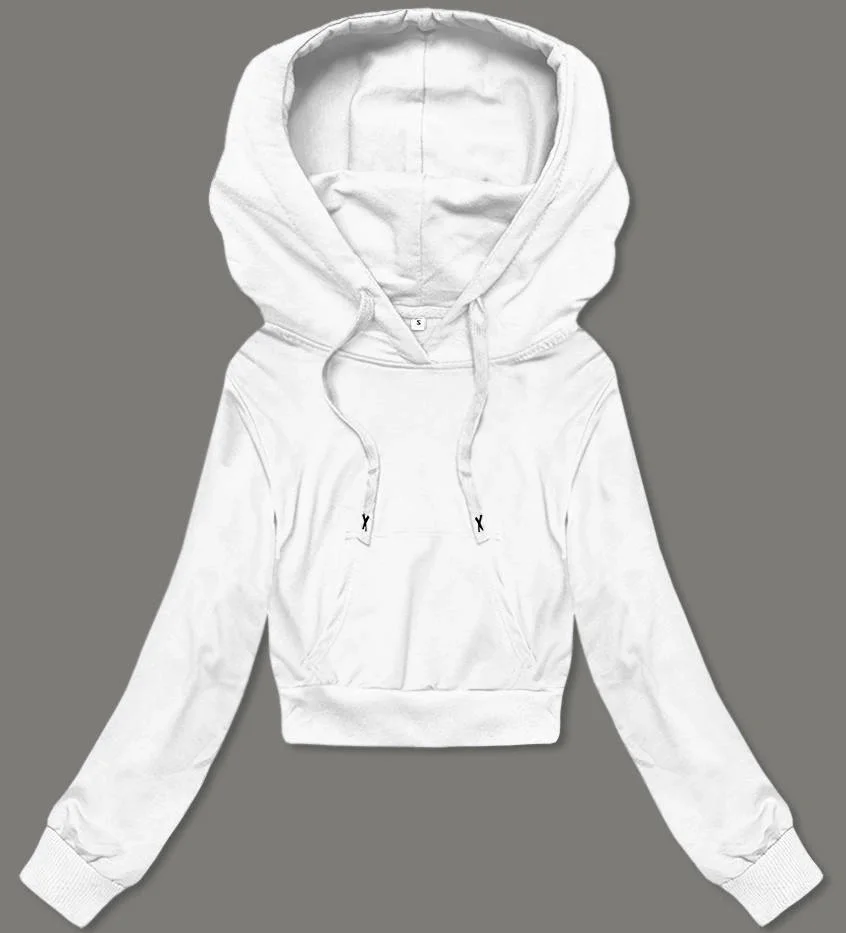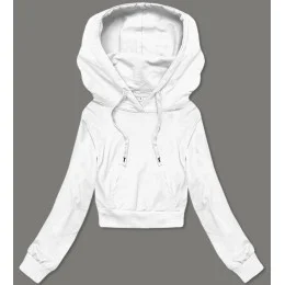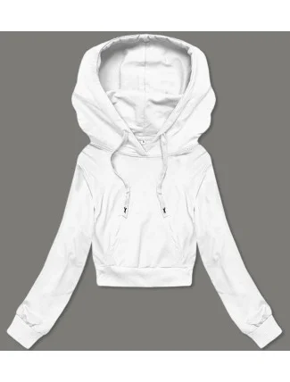 Krátká bílá tepláková mikina s kapucí (8B939-1)