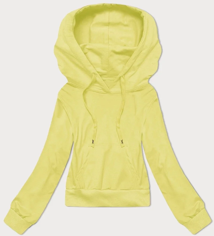 Krátká tepláková mikina v citrónové barvě s kapucí (8B939-33)