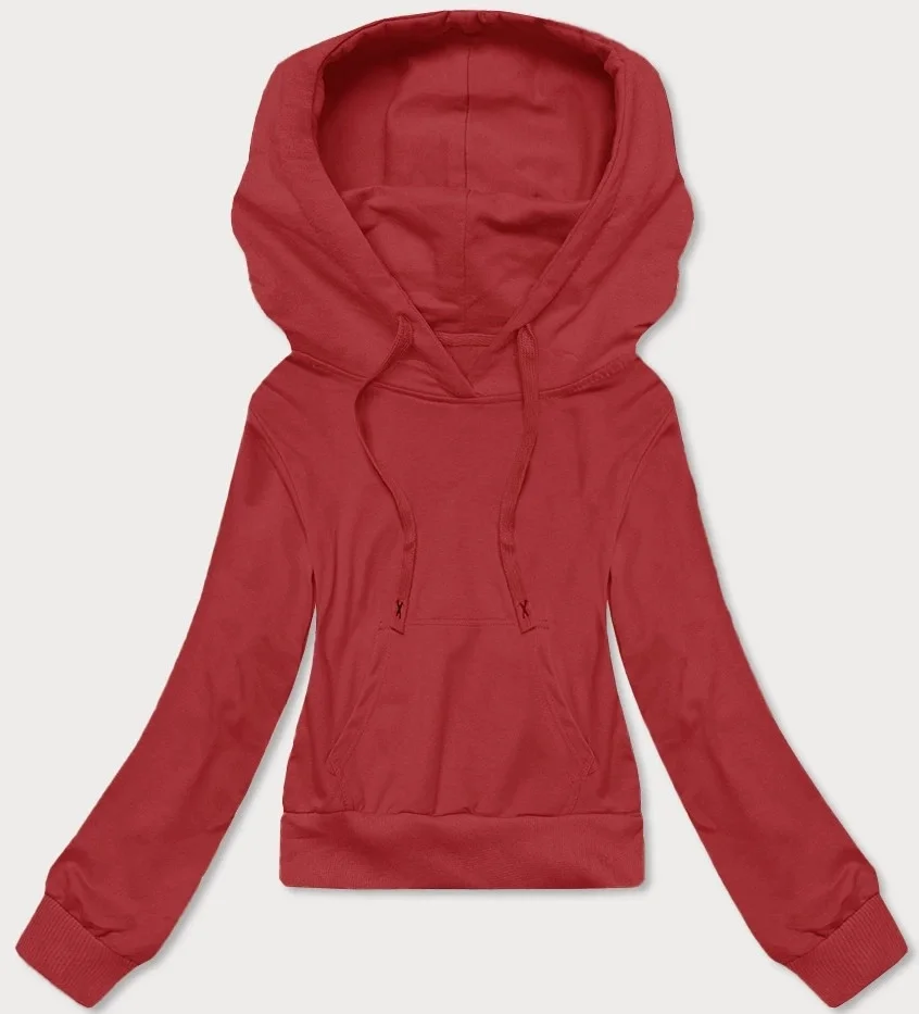 Krátká červená tepláková mikina s kapucí (8B939-18)