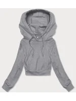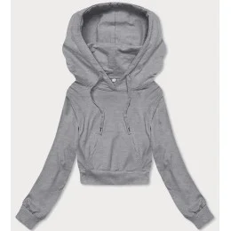 Světle šedá krátká tepláková mikina s kapucí (8B939-2)