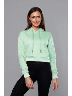Krátká tepláková mikina v pistáciové barvě s kapucí (8B939-39)