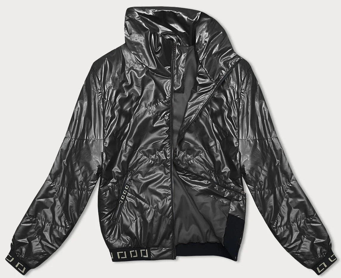Krátká černá lesklá dámská bunda se stojáčkem (5M3195)
