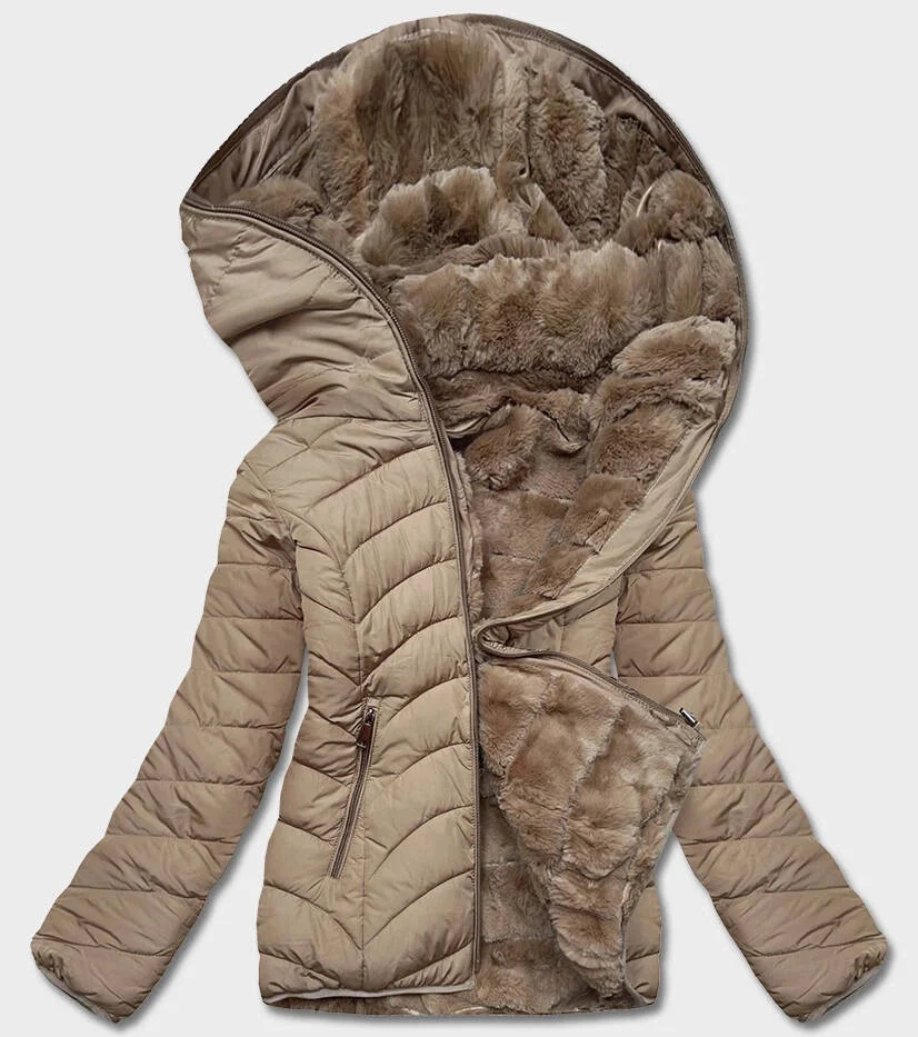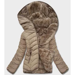 Béžová krátká oboustranná dámská zimní bunda (2M-21507)