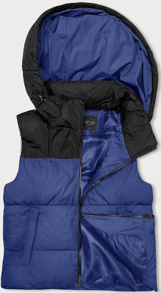 Modro-černá krátká dámská vesta J.STYLE s kapucí (16M9112-184)