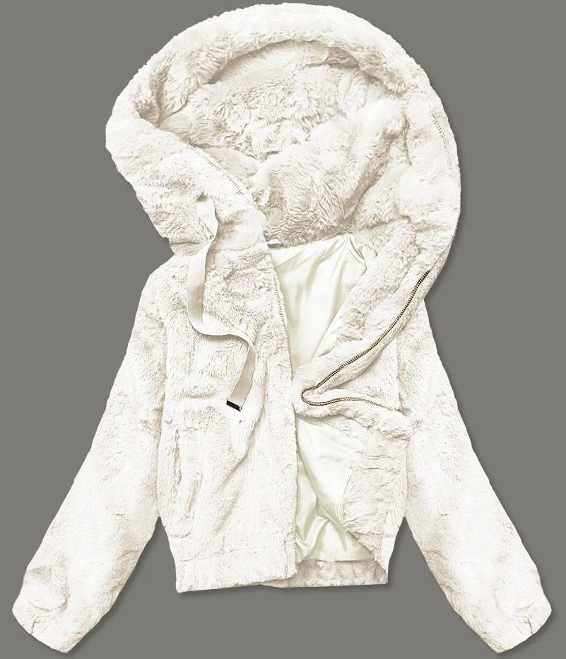 Krátká dámská kožešinová bunda v ecru barvě (R8050-26)