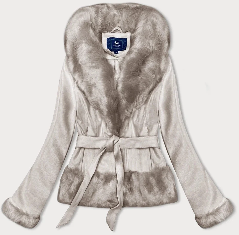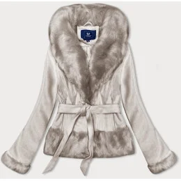 Světle béžová krátká dámská zavazovací bunda Ann Gissy (K0327)