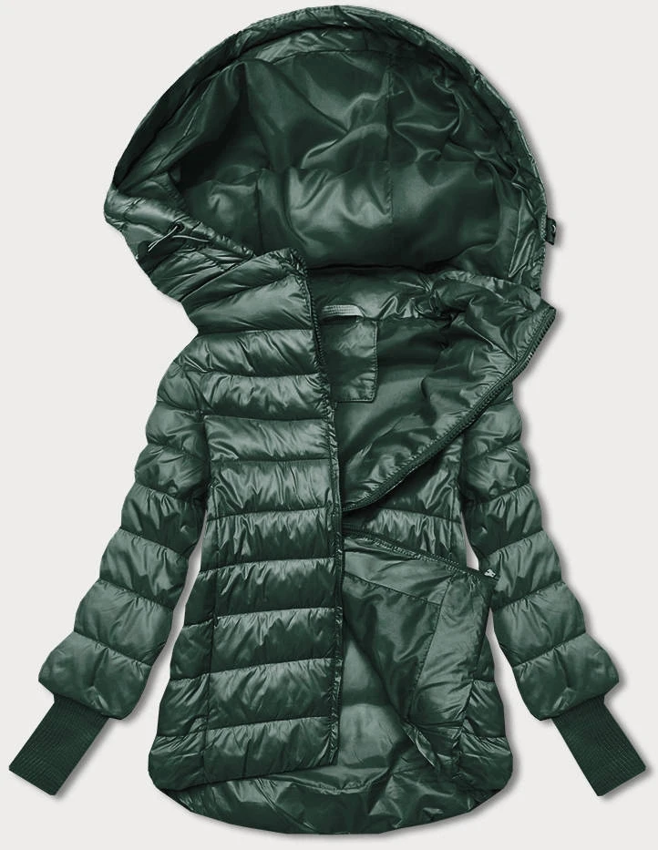 Tmavě zelená krátká dámská bunda s úpletovými stahovacími lemy (P22/P3-6636/P3-6023-33)