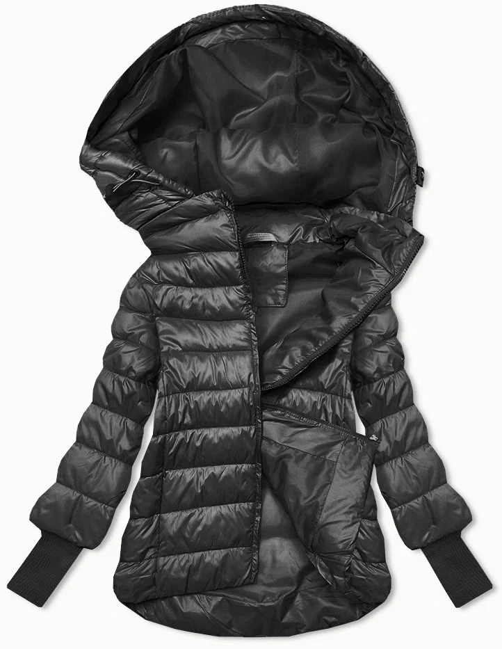 Krátká dámská bunda v grafitové barvě s úpletovými stahovacími lemy (P22/P3-6636/P3-6023-27)