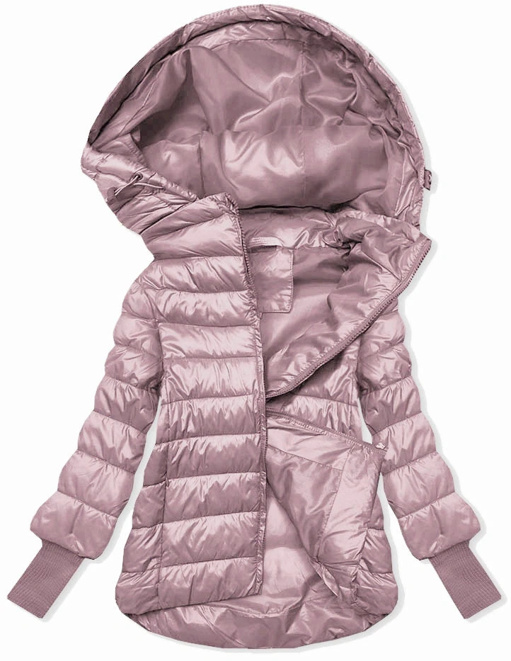 Krátká růžová dámská bunda s úpletovými stahovacími lemy (P22/P3-6636/P3-6023-52)