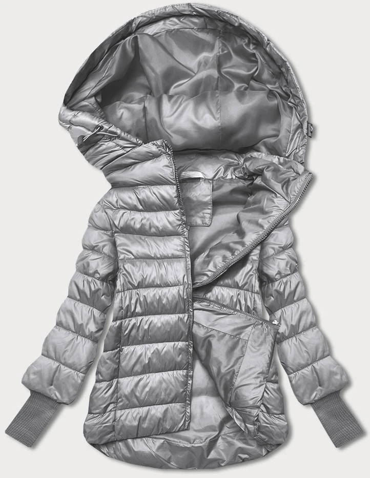 Krátká šedá dámská bunda s úpletovými stahovacími lemy (P22/P3-6636-61)