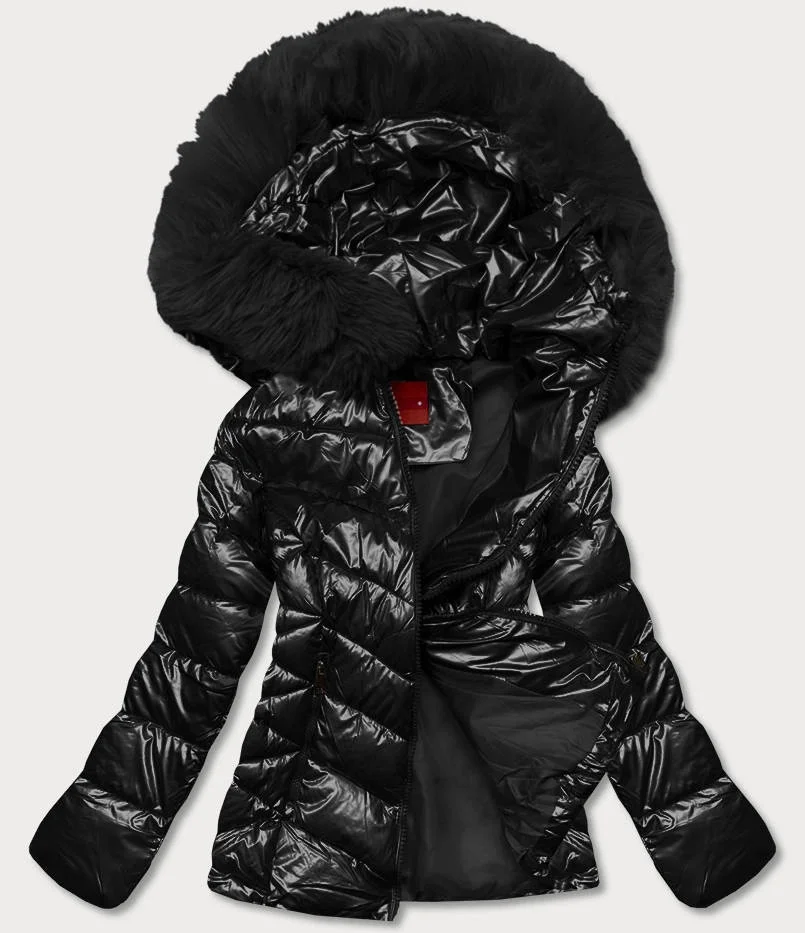 Černá krátká dámská bunda s kožešinou (TY036-1)
