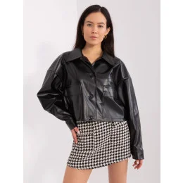 Krátká černá dámská bunda z imitace kůže (508543)
