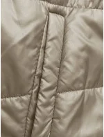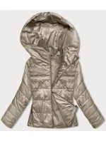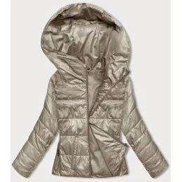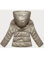 Krátká béžová dámská bunda s kapucí (B8187-12)