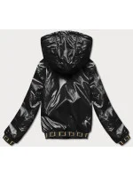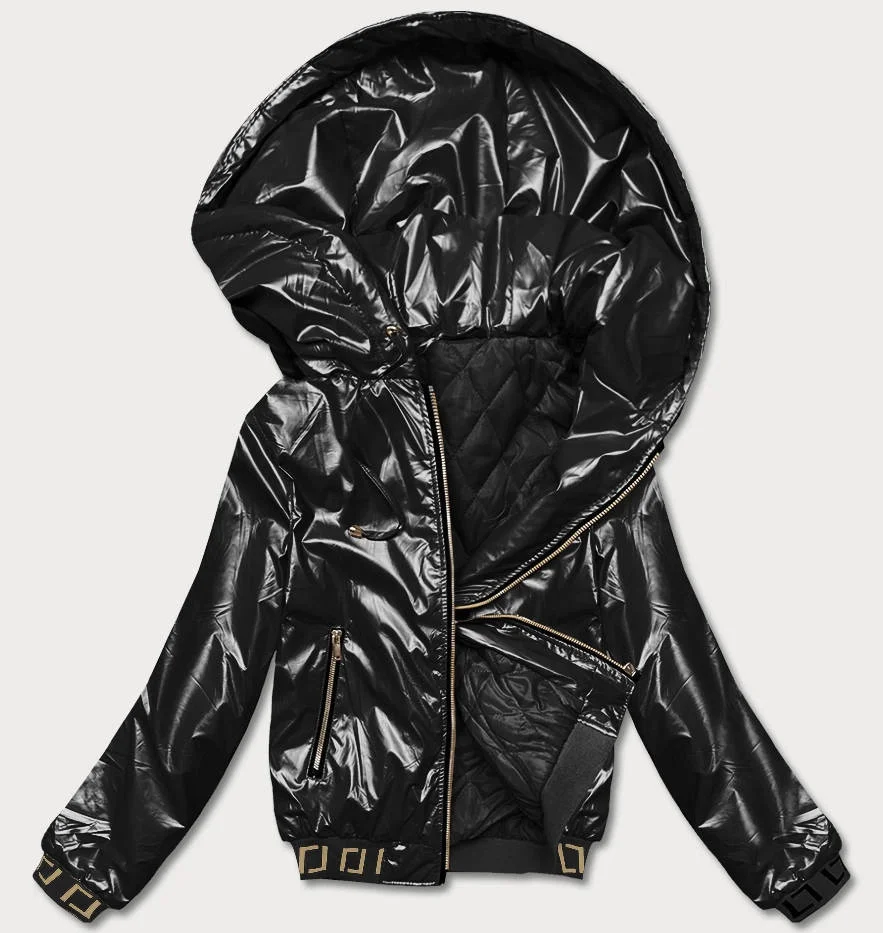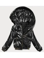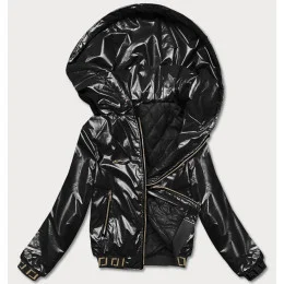 Krátká černá dámská bunda s kapucí (B8077-1)