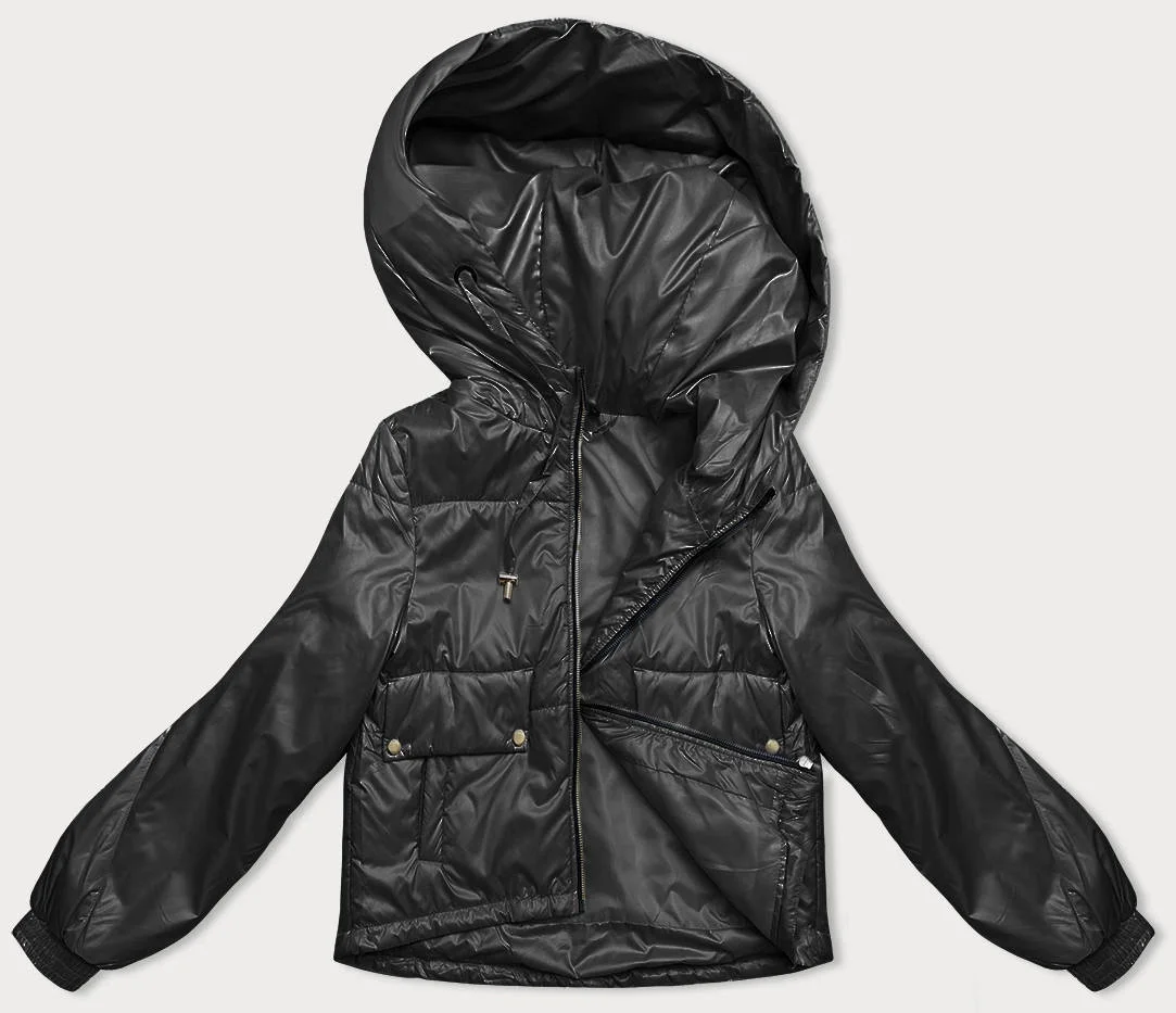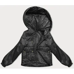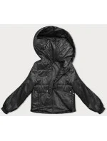 Krátká černá dámská bunda s kapucí (B8216-1)