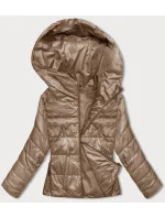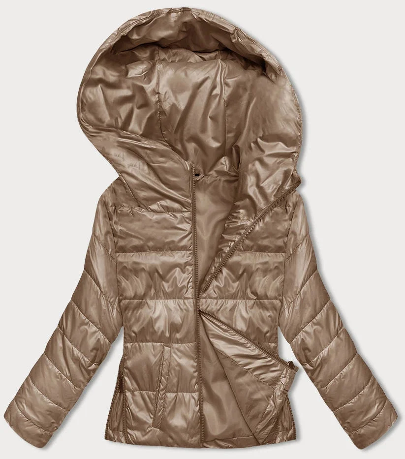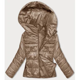 Krátká dámská bunda v karamelové barvě s kapucí (B8187-101)