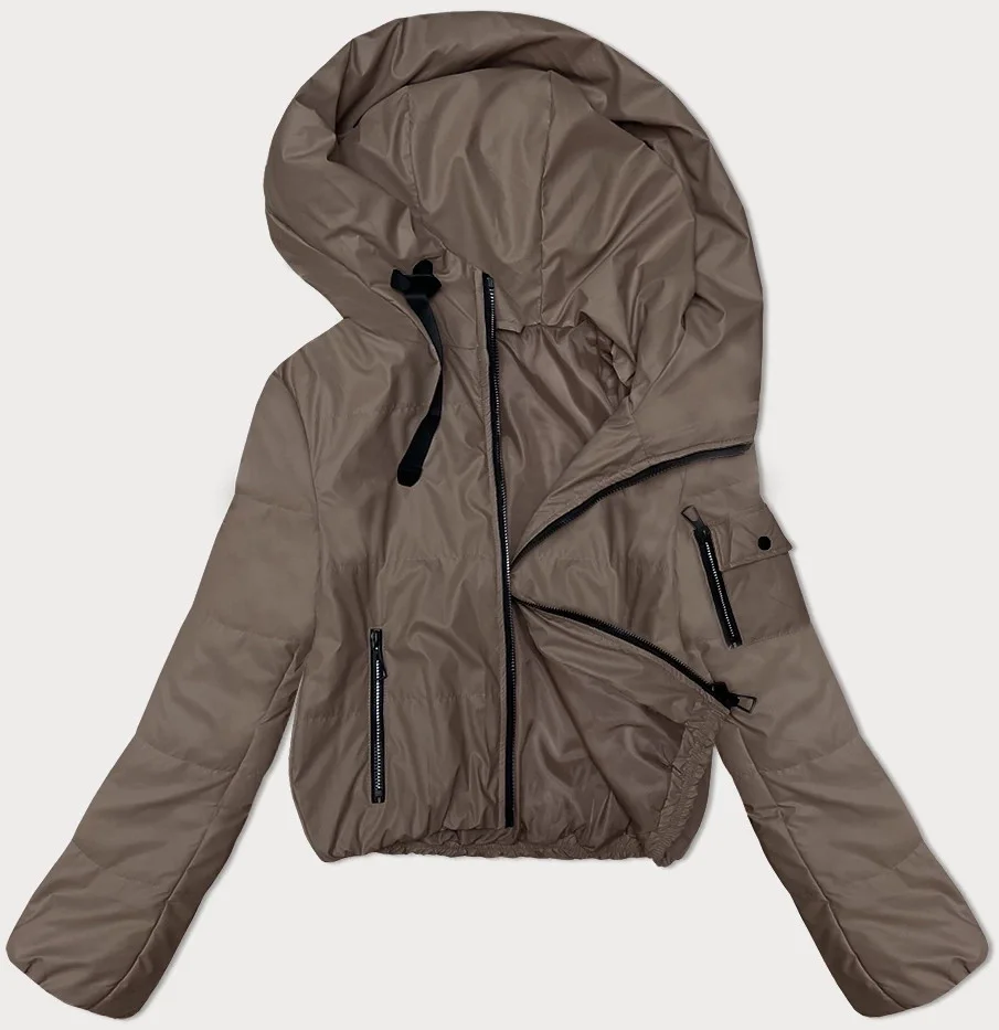 Tmavě béžová krátká dámská bunda s kapucí S'West (B8246-12)