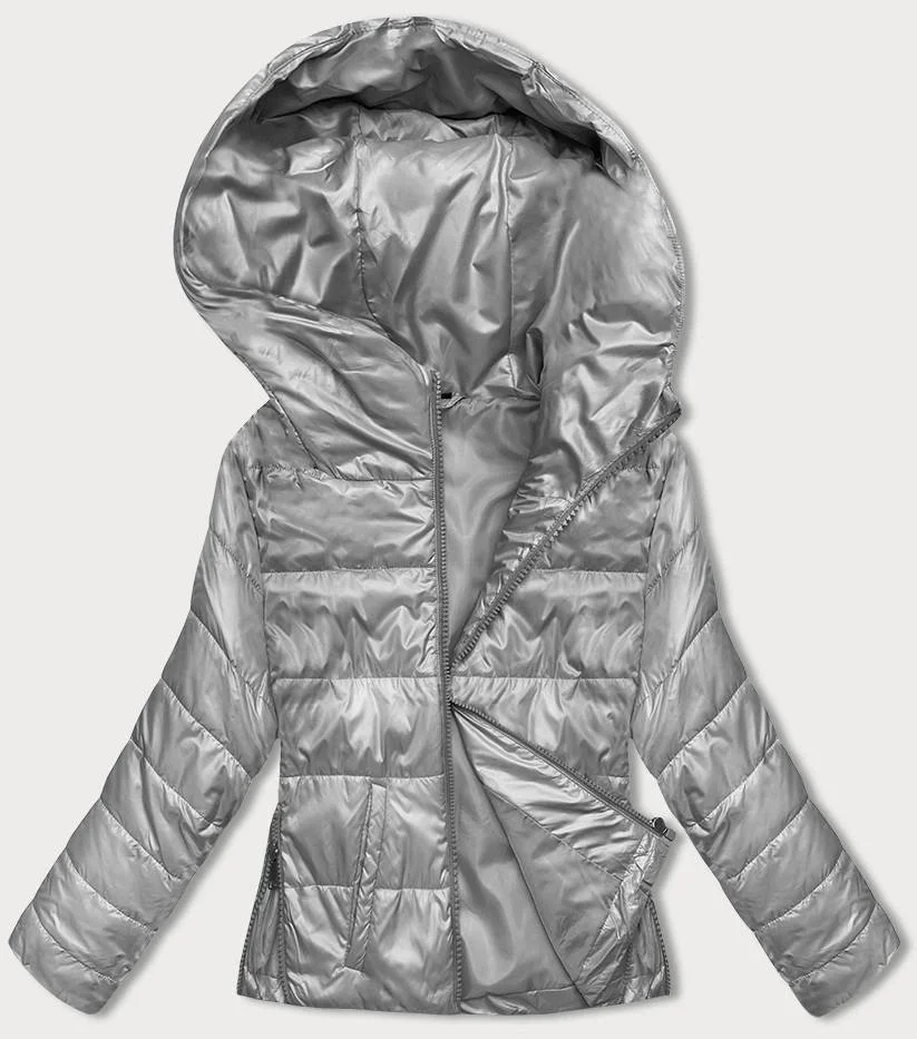 Krátká šedá dámská bunda s kapucí (B8187-9)