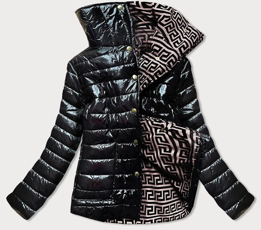 Černá krátká dámská bunda s vysokým stojáčkem (650art)
