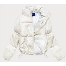 Krátká dámská bunda v barvě ecru z ekologické kůže (202016)