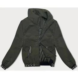 Krátká dámská bunda v army barvě se stojáčkem (5M3161)
