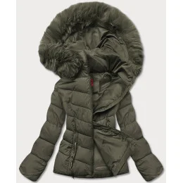 Krátká dámská zimní bunda v khaki barvě (TY043-29)