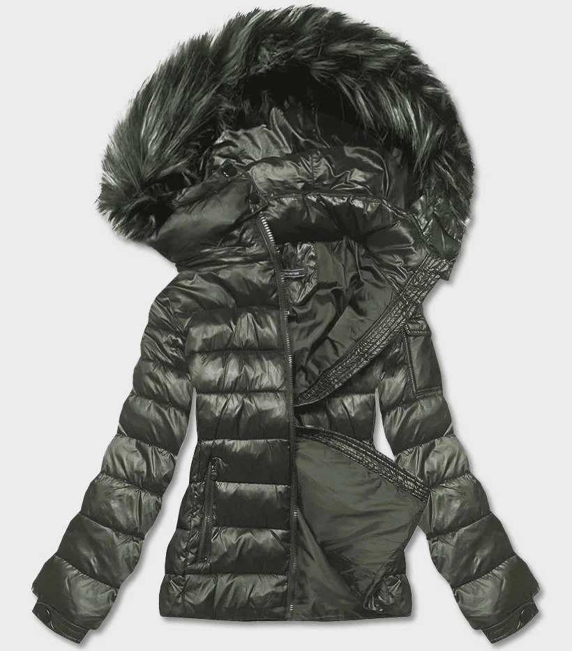 Krátká dámská zimní bunda v khaki barvě (YP-20129-6)