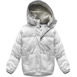 Bílá krátká dámská zimní bunda s přírodní péřovou výplní (7113)