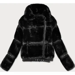 Černá krátká kožešinový bunda s límcem J Style (11Z8163)