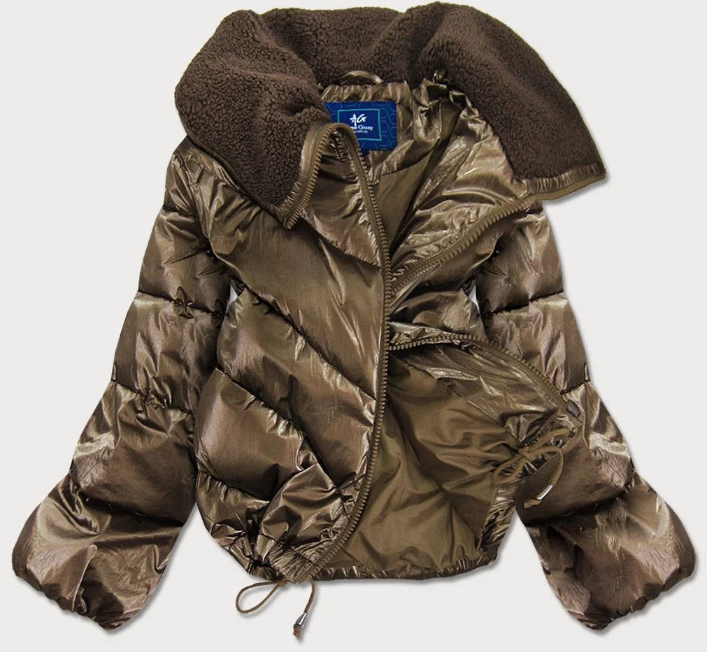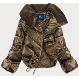 Hnědá krátká dámská oversize bunda se širokými rukávy (J9-016)