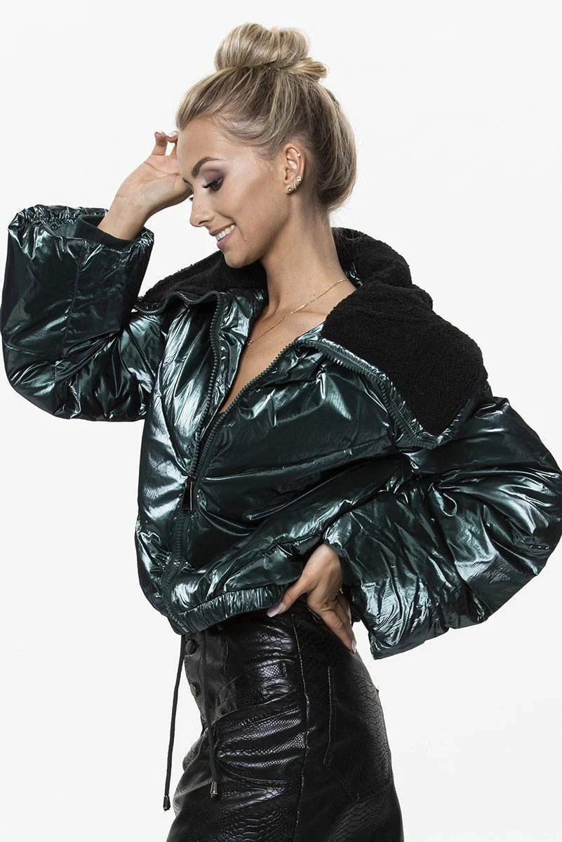 Zelená krátká dámská oversize bunda se širokými rukávy (j9-016)