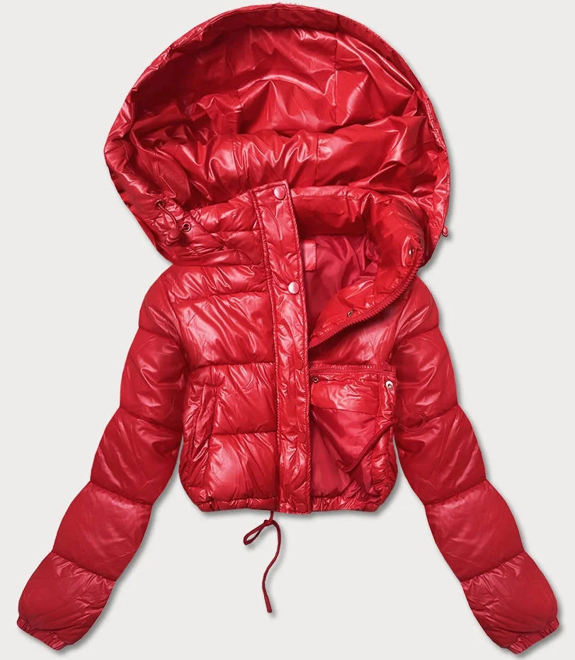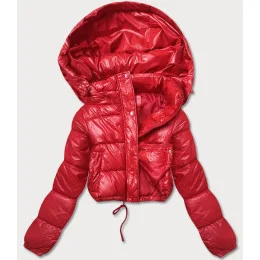 Červená krátká péřová bunda typu crop (d2-3831-16)