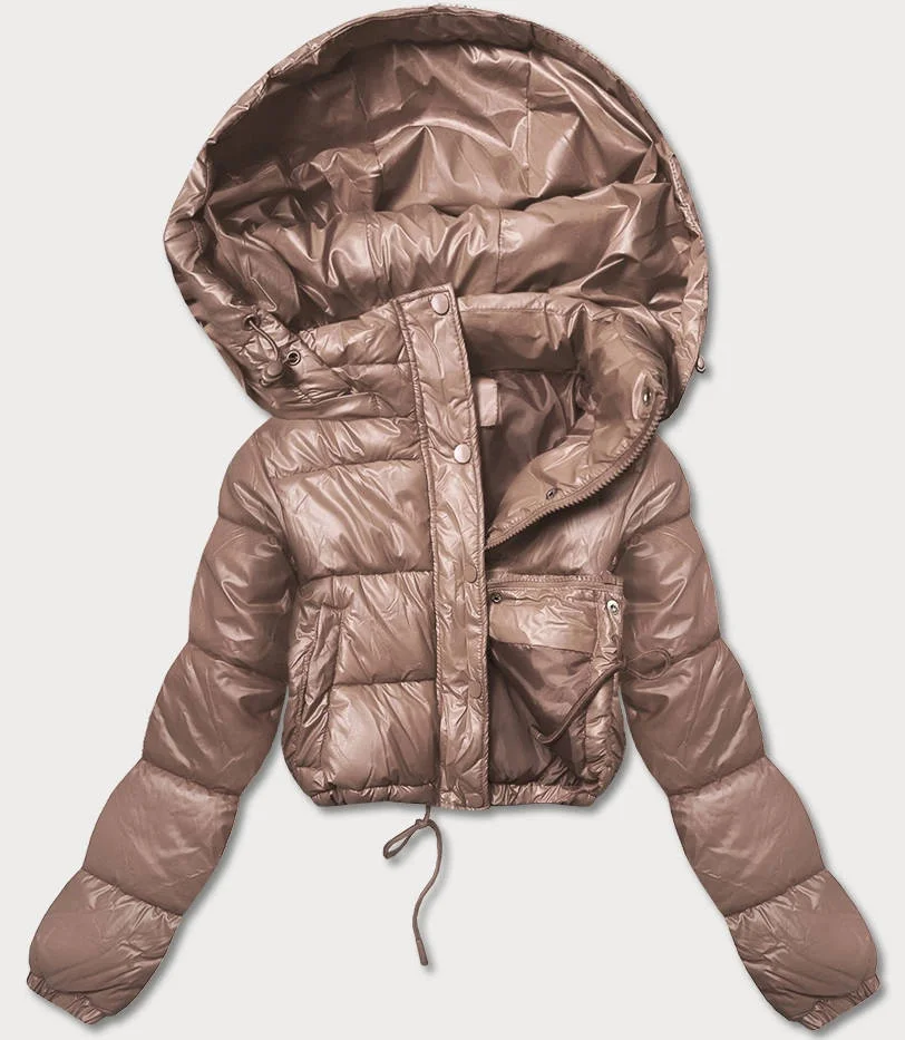 Světle hnědá krátká péřová bunda typu crop (d2-3831-305)