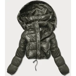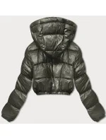 Krátká péřová bunda v khaki barvě typu crop (d2-3831-22)
