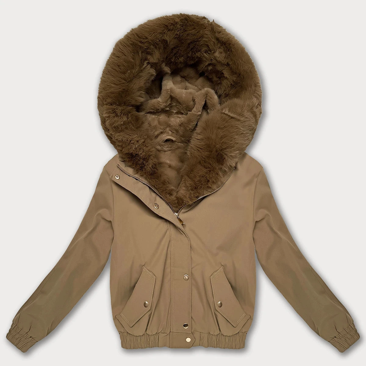 Tmavě béžová krátká bunda s kožešinovou podšívkou S'West (B8506-22)
