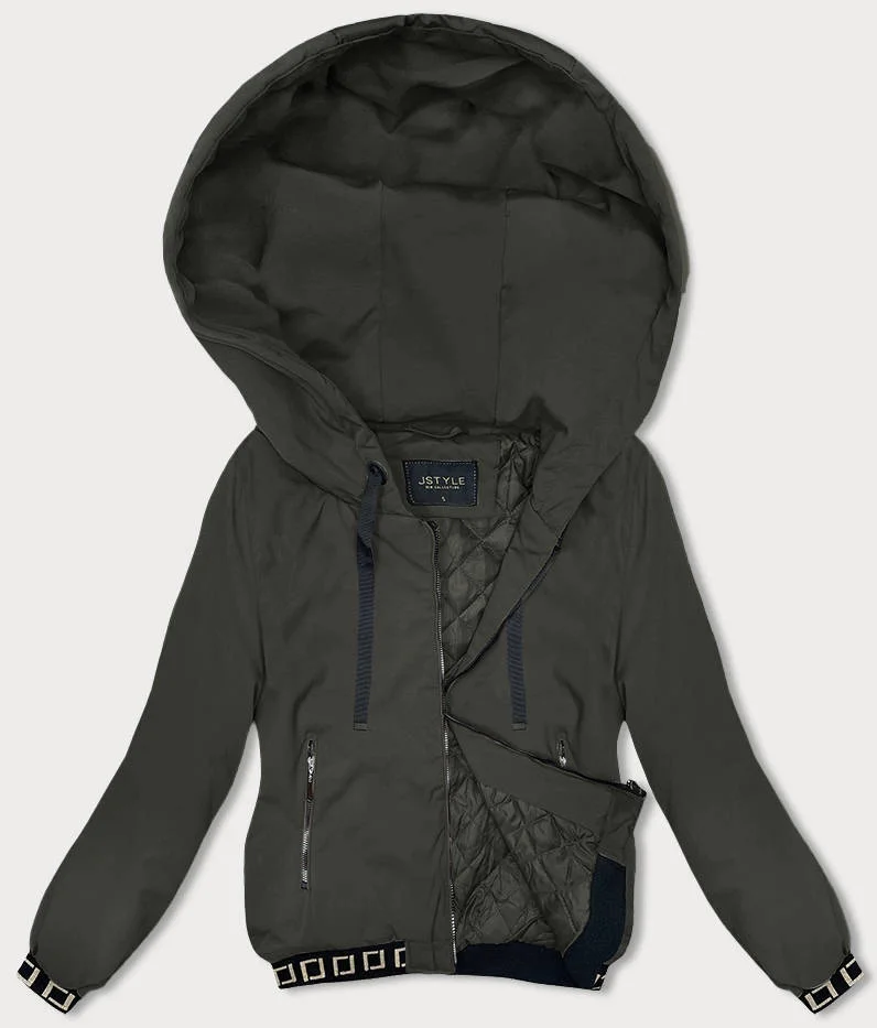 Krátká bunda v army barvě s ozdobnými stahovacími lemy (16M9083-136)