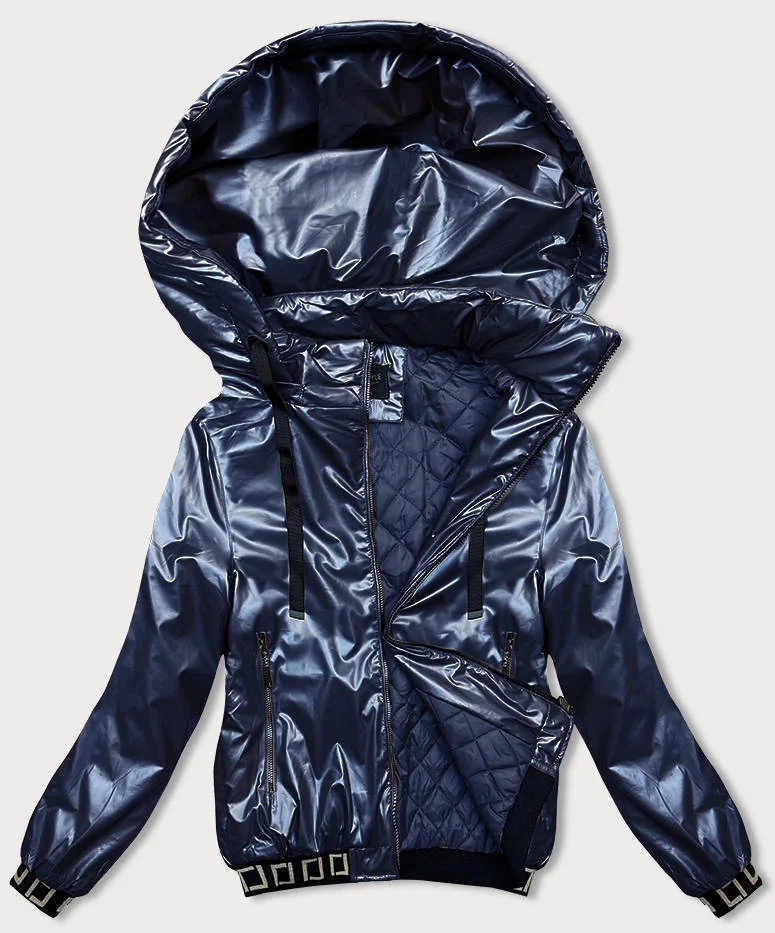 Tmavě modrá krátká bunda s ozdobnými stahovacími lemy (16M9087-215)