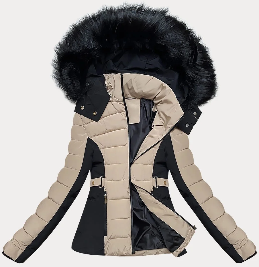 Bunda je zateplená syntetickou péřovou výplní, má dvě kapsy a zapíná se pogumovaným zipem. Model má kapuci olemovanou kožešinou. Kapuci i kožešinu je možné odepnout. Na koncích rukávů jsou skryté stahovací lemy. Na bocích jsou v pase stahovací pásky. Bunda má délku k bokům.