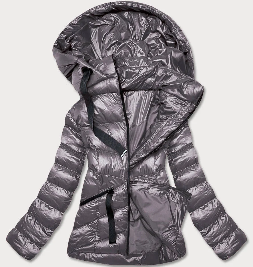 Tmavě šedá krátká dámská zimní bunda (23066-105)