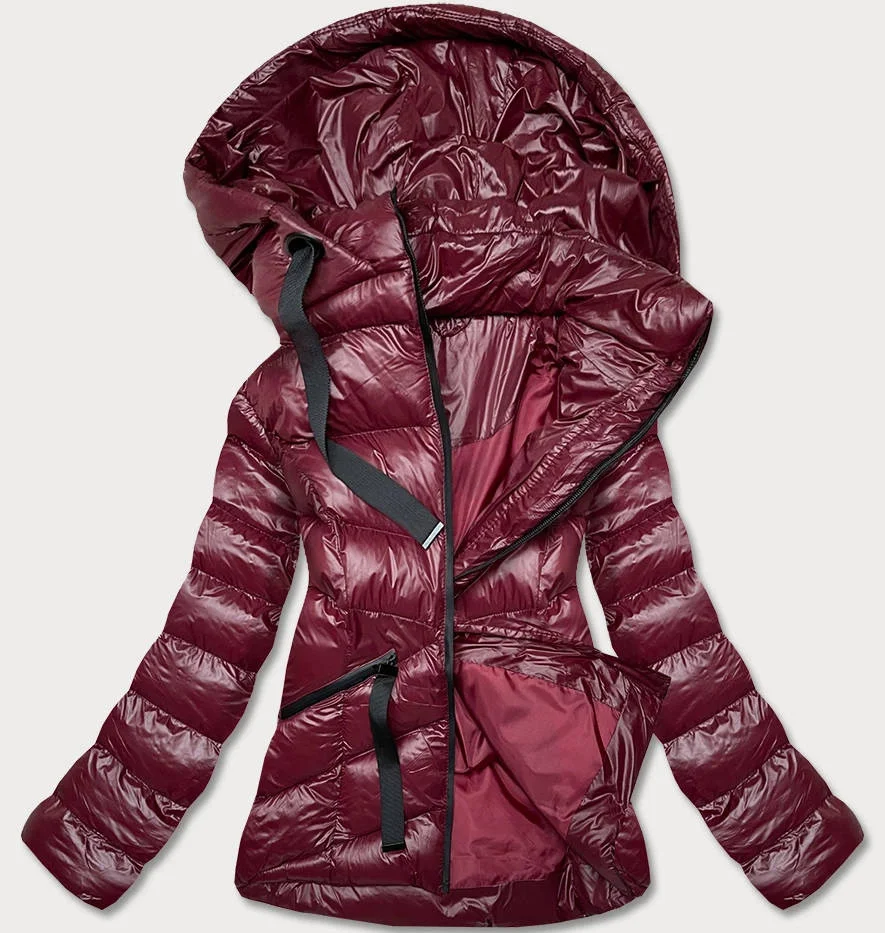 Krátká dámská zimní bunda v třešňové barvě (23066-7)