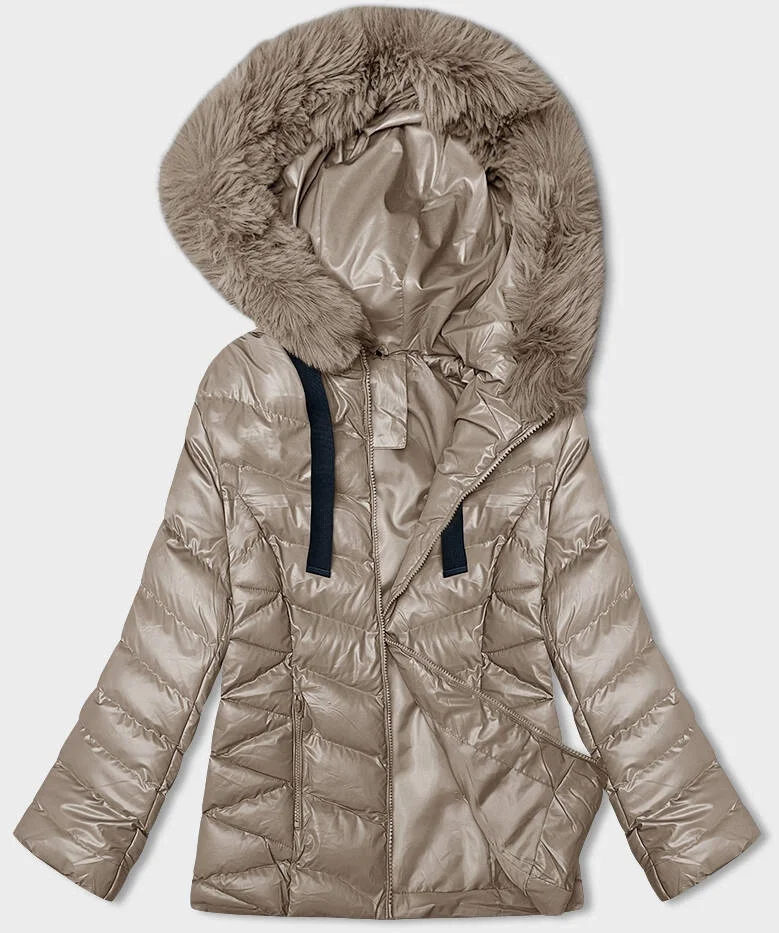 Béžová krátká zimní bunda s kapucí (5M3138-62)
