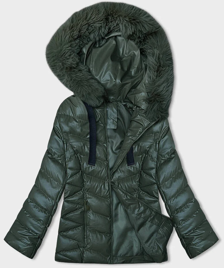 Tmavě zelená krátká zimní bunda s kapucí (5M3138-238)